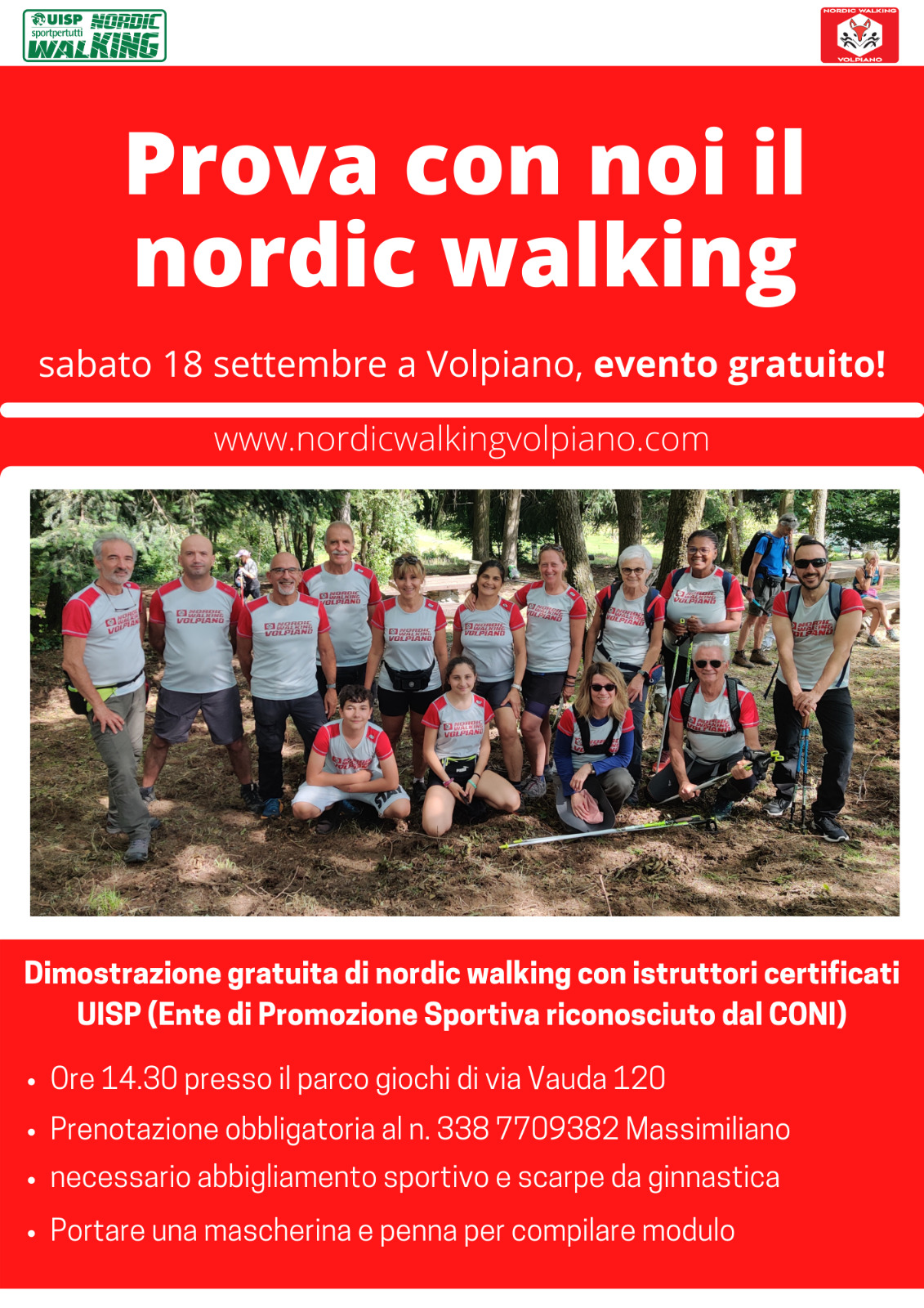 Sabato 18 Settembre a Volpiano presso il parco della Vauda, proponiamo una dimostrazione gratuita del nordic walking, potrai inoltre conoscere la nostra associazione e nostri istruttori.