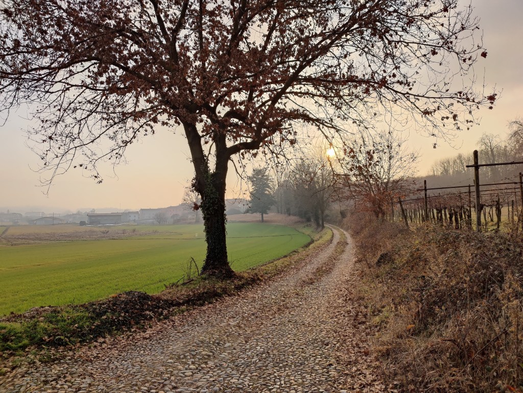 Da qui scenderemo prima su di un tratto di sterrata non ben assestato, successivamente su di un interessante fondo acciottolato. Costeggeremo alcuni vigneti e un albero che “ha a che fare con una pietra preziosa” per poi ritornare all’interno di Borgomasino dove concluderemo il percorso.