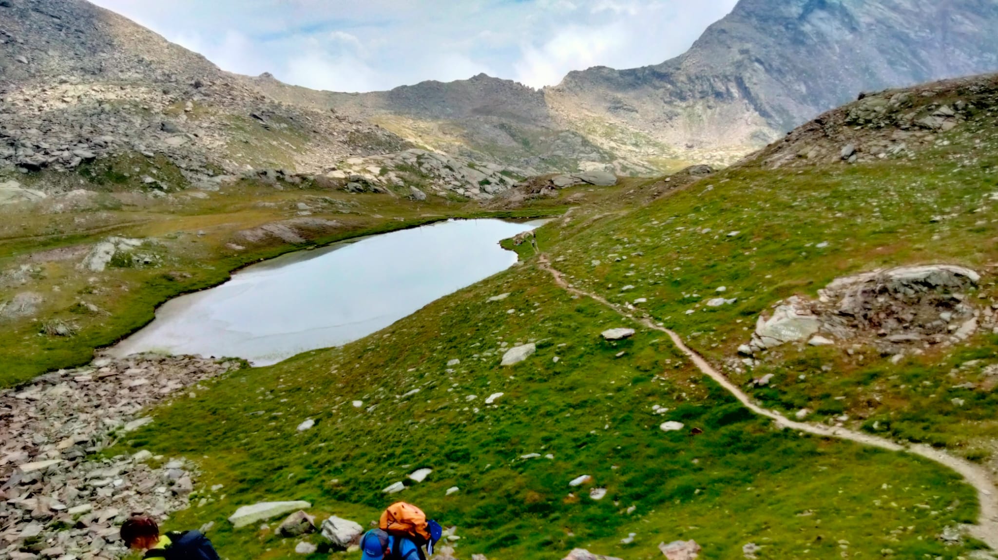 L’emozione non manca perché accanto alla parte di facile sentiero percorriamo un breve tratto su pietra con un corto tiro di corda; ci inoltriamo su una breve cresta che ci permette di osservare il paesaggio della conca da un lato e della valle Germanasca dall’altro; camminiamo su sentieri un po’ esposti. Piccoli brividi! Ma la visione delle cime da lassù toglie il fiato: l’altezza, vette che si susseguono, valli appena percepite, nuvole che si formano e si dissolvono in un attimo.