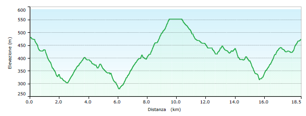 Il percorso ha una lunghezza di 18,5 km con un dislivello totale di 650 metri suddiviso in diverse salite.
