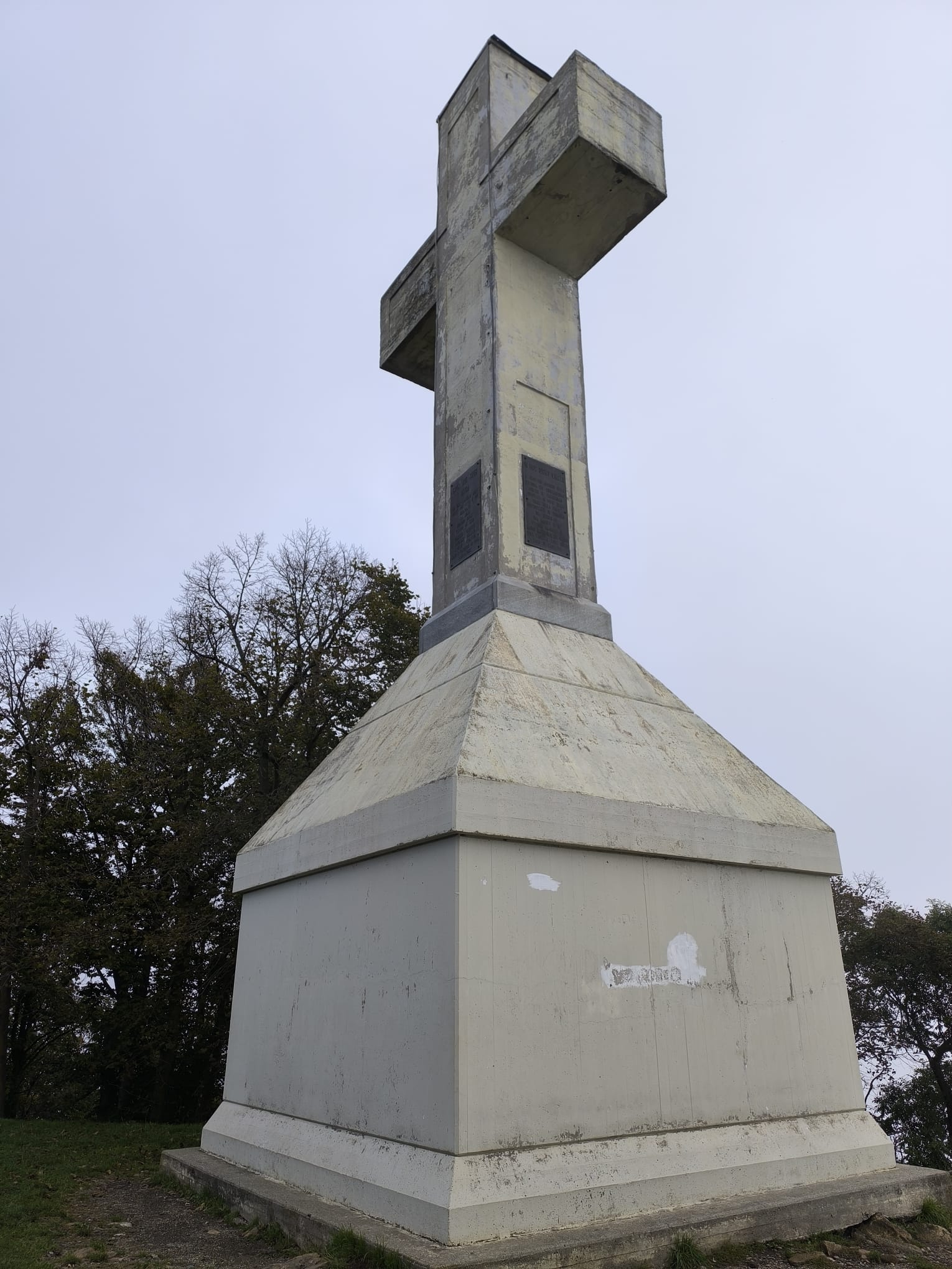 Sulla vetta potremo quindi ammirare il panorama vicini alla croce di vetta bianca in cemento armato alta ben 15 metri che permette al Monte di essere distinto da tutte le altre montagne del gruppo e una tavola di orientamento in acciaio inossidabile che ci consentirà di distinguere le principali montagne visibili.