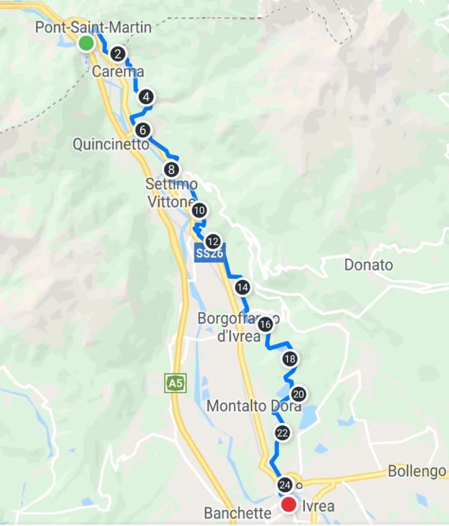 da Volpiano circa 90 km (1h 15m circa di viaggio in auto)