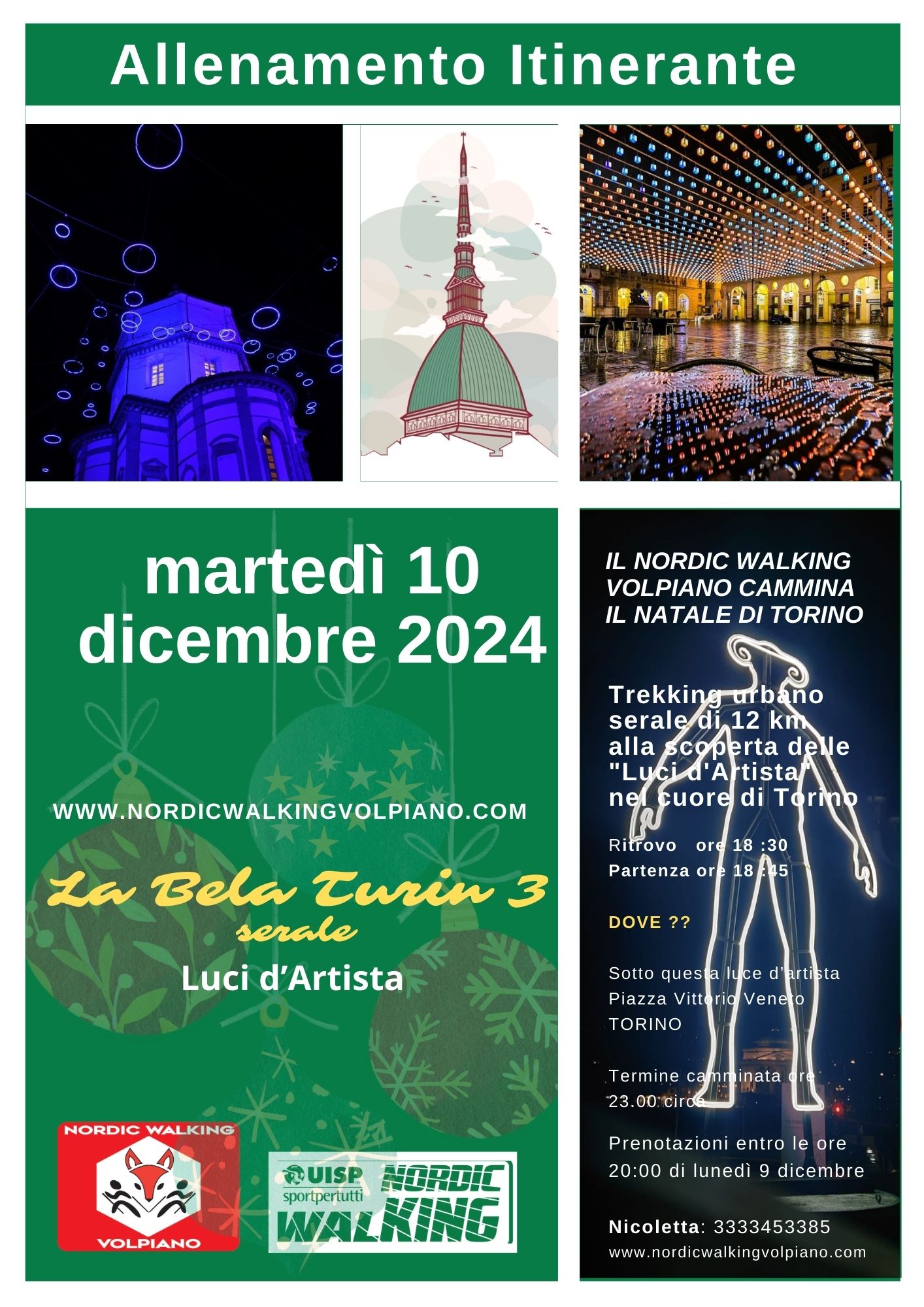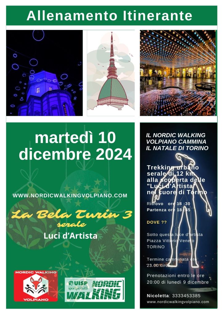 Tre allenamenti che uniscono la bellezza di Torino e della sua collina con il fascino delle luci natalizie della città.