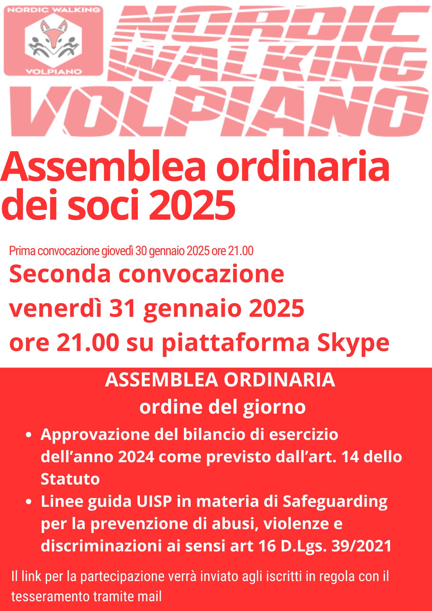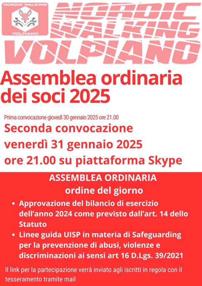 In conformità con l’art. 14 dello Statuto dell’ASD Nordic Walking Volpiano, è indetta l’assemblea ordinaria dei soci nei tempi e secondo le modalità indicate nel documento allegato.