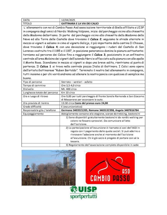 È passato un po’ di tempo dall’ultima volta che abbiamo avuto il piacere di camminare insieme, ed è proprio per questo che siamo ancora più felici di accogliere l’invito dell’ASD Cambio Passo di Biella! Un’occasione speciale per condividere la nostra passione per il cammino, riscoprire il legame con la natura e rafforzare l’amicizia che ci unisce.