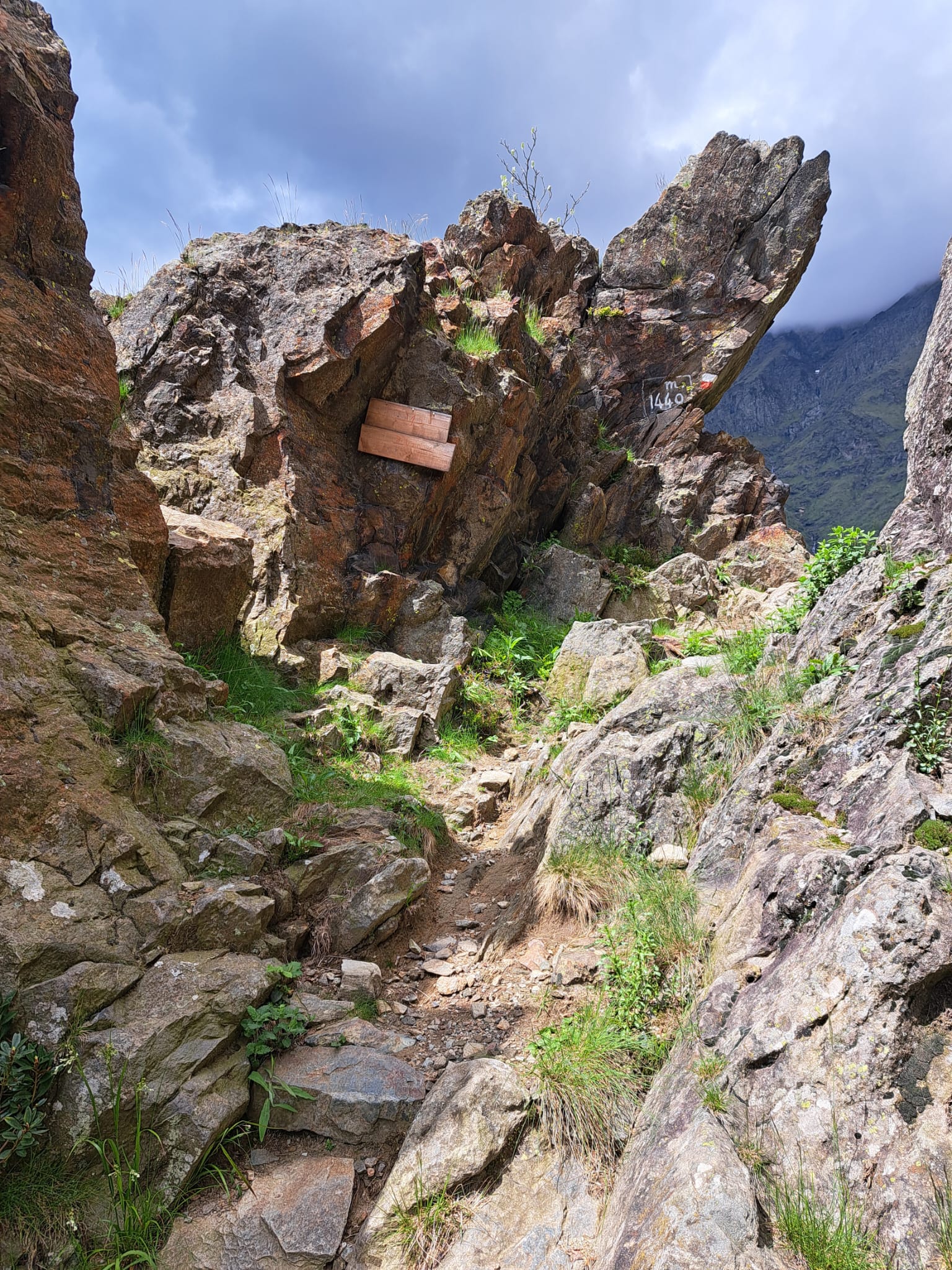Tratti esposti: il percorso si sviluppa in ambiente alpino su sentiero mezzacosta, ben mantenuto e completamente camminabile (classificazione E). Sono presenti alcuni brevi e facili passaggi esposti dove è richiesto piede fermo e assenza di vertigini