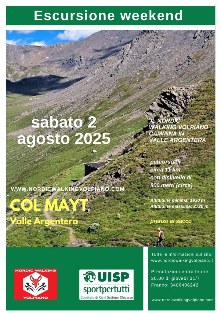 Dalla fontana a valle della casermetta si dipartono quindi due sentieri: la deviazione di sx sale al Colle Mayt (2705 m).