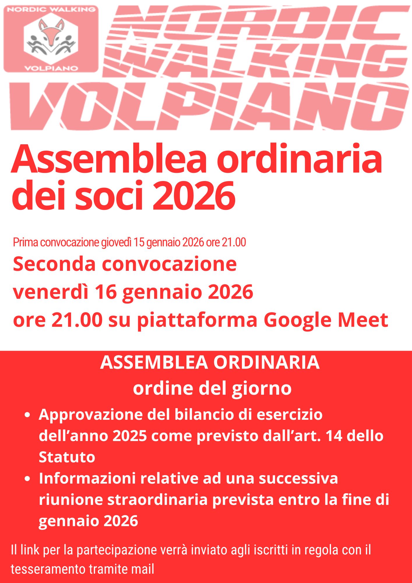 In conformità con l’art. 14 dello Statuto dell’ASD Nordic Walking Volpiano, è indetta l’assemblea ordinaria dei soci nei tempi e secondo le modalità indicate nel documento allegato.